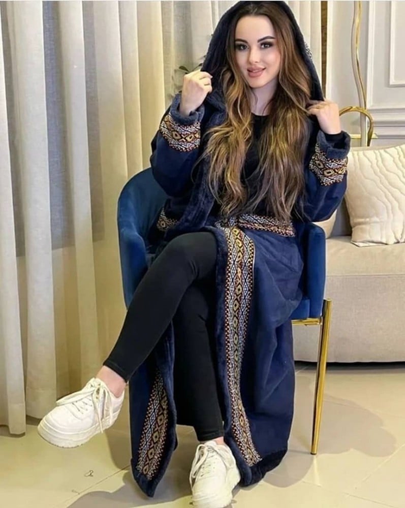 فرو نسائي مقلم لون رصاصي بنقشة السدو