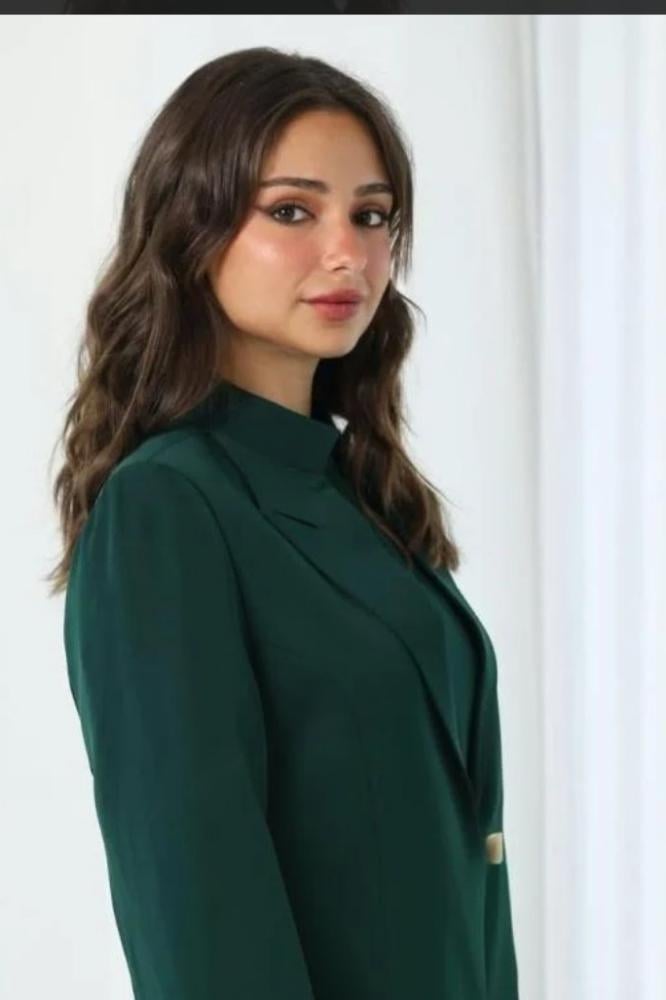 بليزر رسمي أنيق ومميز باللون الأخضر العشبي الجميل من قماش الكريب الإندونيسي المقاوم للتجعد مزينة بنظام اقفال جديد ومميز باللون الذهبي و أزارير على الكم باللون الذهبي أضافت للقطعة جمالاً وأناقة وجعلت منها قطعة أنيقة ومتميزة مناسبة للدوام والعمل والمقابلات الرسمية والمناسبات الخاصة