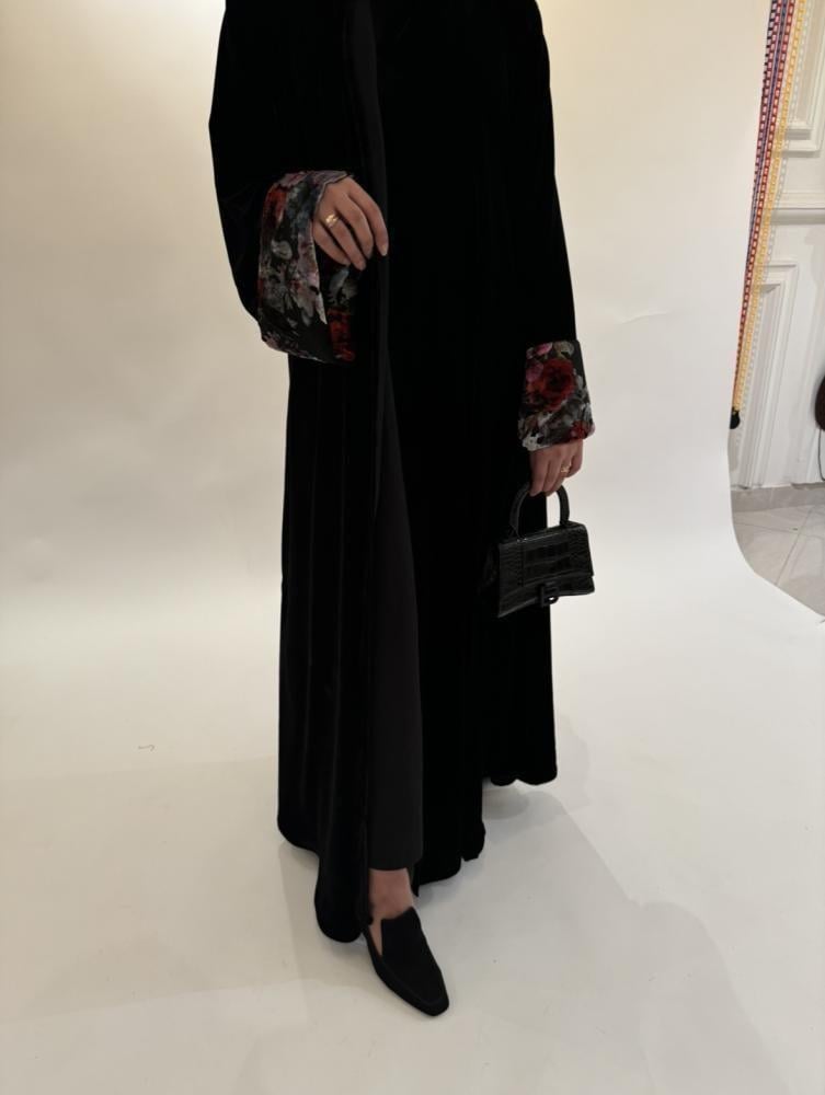 نوع القماش: مخمل اسود + الاكمام شيفون مخمل